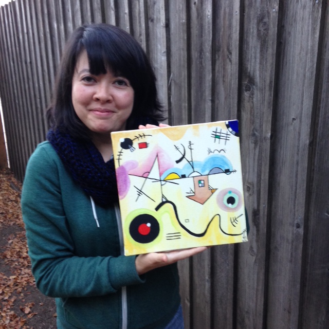 Here is my the progress of my artwork in honor of Kandinsky and my final piece! I also made a fun video of the progress. Thanks to my friend John Laux for filming for me while I painted. 🙂