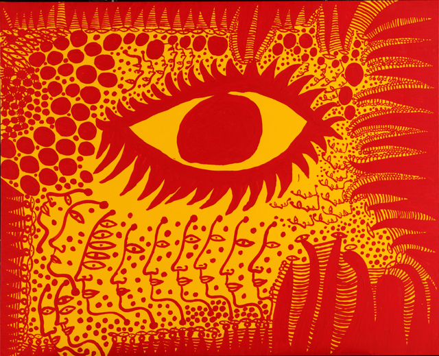 Kusama’s work is based in conceptual art and shows some attributes of feminism, minimalism, surrealism, Art Brut, pop art, and abstract expressionism, and is infused with autobiographical, psychological, and sexual content. Kusama is also a published novelist and poet, and has created notable work in film and fashion design. Major retrospectives of her work have been held at the Museum of Modern Art, the Whitney Museum, and Tate Modern, whilst in 2008 Christies New York sold a work by her for $5.1 million, a record for a living female artist.