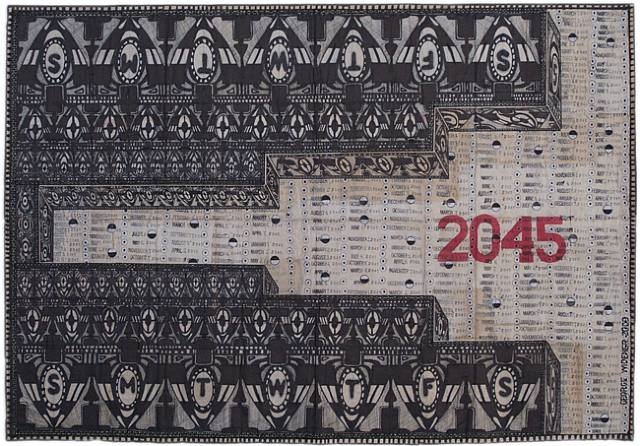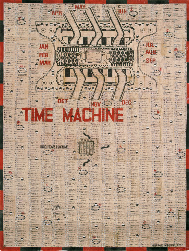 based fascination with calendars, history, dates, statistics, and census numbers into visual art in ways that have not been seen before. For example, he may draw a large city landscape and place ‘lucky’ future dates into it, or perhaps devise a large ‘weekend’ cruise ship.
