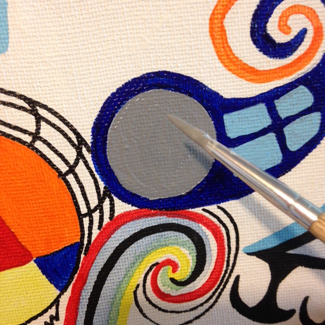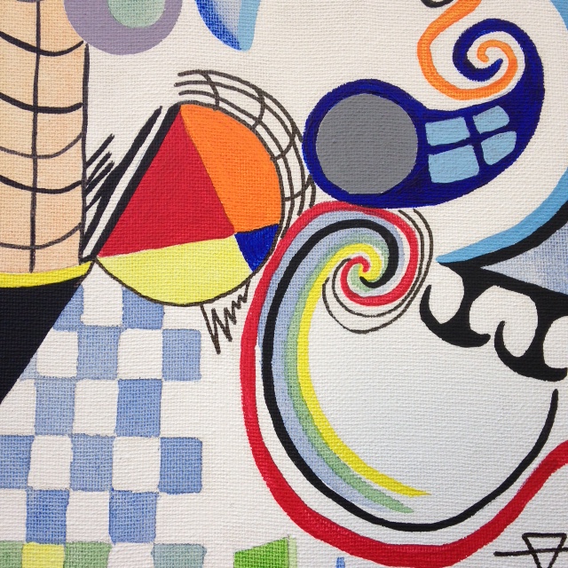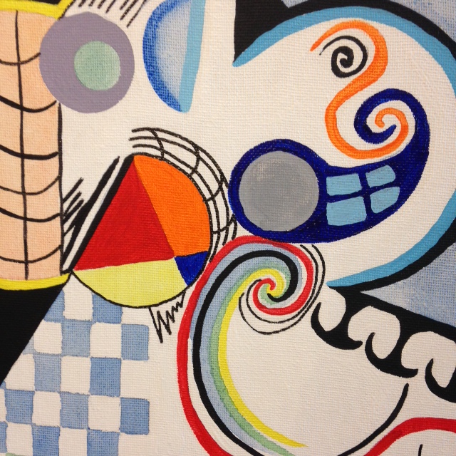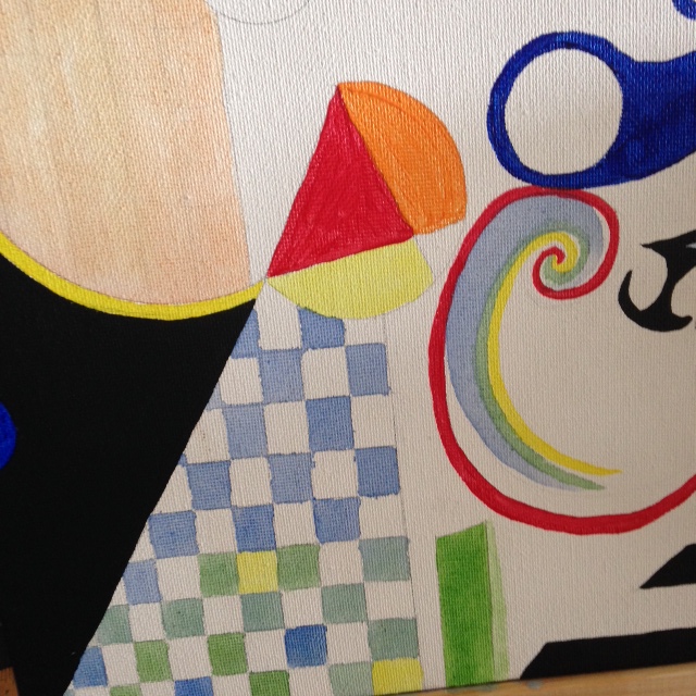 difficult this type of painting is. Just like with Itten and other similar painters, I initially thought…oh, this’ll be a breeze. I’ll just draw a bunch of shapes and lines onto the canvas and fill in it with paint. SO absolutely wrong. Paintings clean and perfect brushstrokes while remembering to breathe is almost impossible. Choosing complimentary colors was a chore. I still don’t think I used enough blue. Or maybe different types of blue? Maybe I used too much black. Well, it’s all a part of this wonderful challenge. Learning, doubting, accepting and eventually just relaxing and letting go. Don’t get me wrong, it wasn’t all negative. I learned much about painting today.