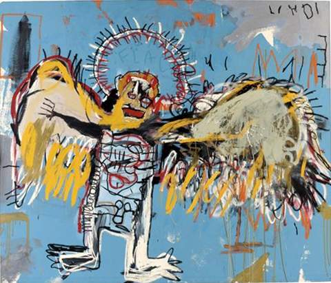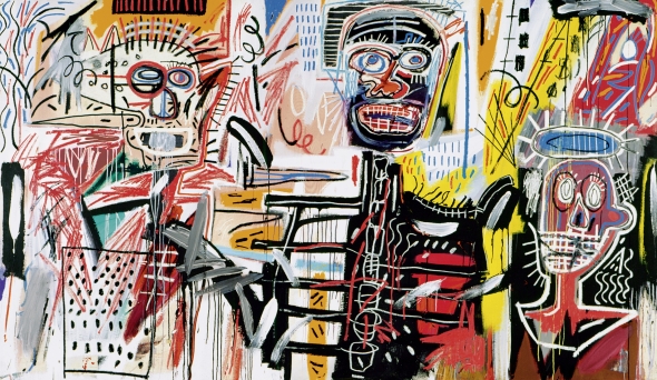 “Basquiat’s canon revolves around single heroic figures: athletes, prophets, warriors, cops, musicians, kings and the artist himself. In these images the head is often a central focus, topped by crowns, hats, and halos. In this way the intellect is emphasized, lifted up to notice, privileged over the body and the physicality of these figures (i.e. black men) commonly represent in the world.”