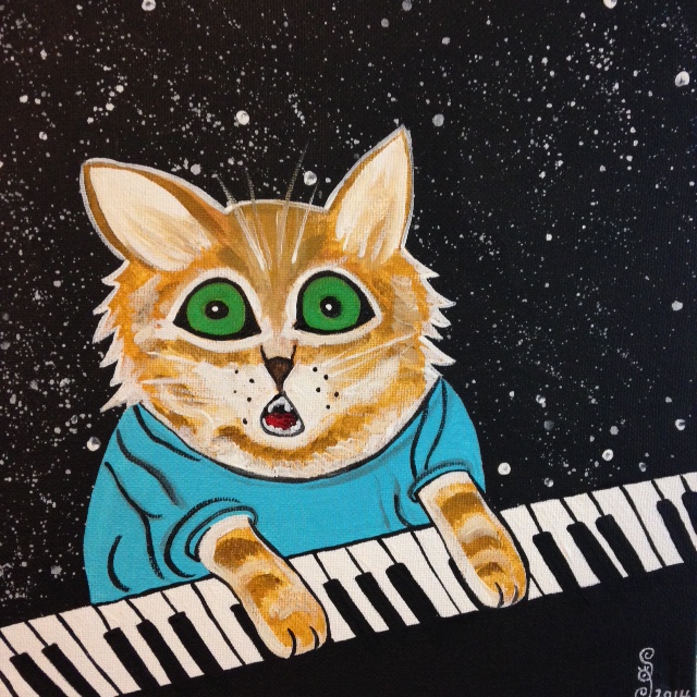 So many cats…so little time. I am very happy that I came up with an idea of what cat I wanted to paint right away. I would’ve been overwhelmed that I didn’t paint cats doing ballet or tap-dancing or something absurd like that. I decided to paint keyboard cat! One of my favorite newly famous kitties! I hope you enjoy my Wain tribute as much as I enjoyed creating it. I feel it captures his spirit, but it also has a modern twist to it. 🙂 See you tomorrow on Day 39!