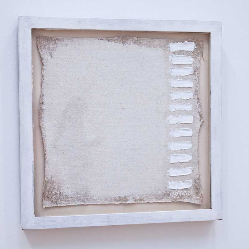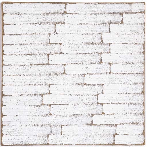 abstract expressionist-influenced brushwork in white or off-white paint on square canvas or metal surfaces. A lifelong experimenter with media, Ryman has painted and/or drawn on canvas, linen, steel, aluminum, plexiglas, lumasite, vinyl, fiberglass, corrugated paper,burlap, newsprint, wallpaper, jute sacking, fiberplate, a composite material called gator board, feather board, handmade paper, and acrilivin. He has used painted and/or drawn with oil, acrylic, encaustic, Lascaux acrylic, casein, enamel, pastel, oil pastel, graphite, guache, and enamelac. Ryman has also experimented with printmaking, creating etchings, aquatints, lithographs, and silkscreens. His most famous quote is “There is never any question of what to paint only how to paint.”