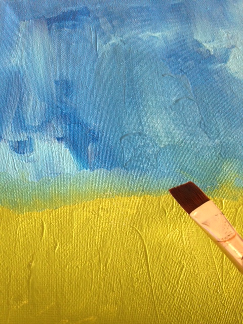 would’ve loved to go out and paint, but under my circumstances I didn’t really have the time to do that…maybe after my move I’ll do more of that. I’m thinking for Van Gogh that would be appropriate. I enjoyed doing this painting. Painting a landscape, but without the pressure of having it be perfect was relaxing. I think straight-up abstract expressionism has been a challenge for me, but somewhere in between is where I think I belong!