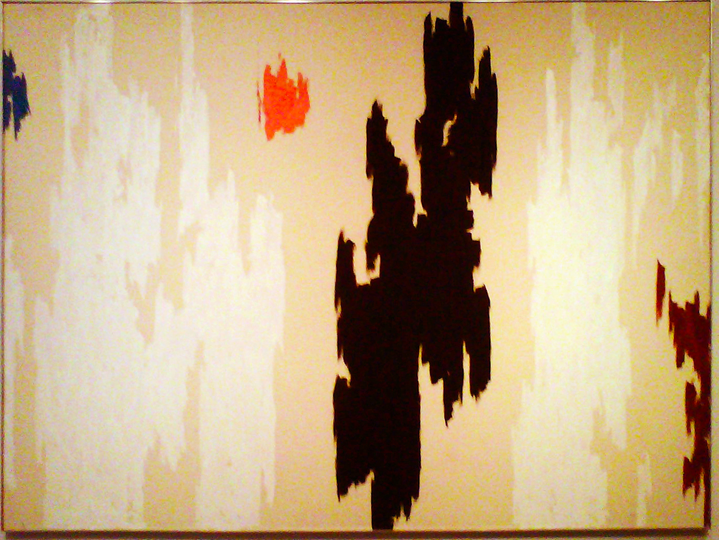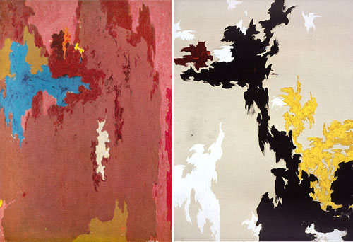 Still was also considered one of the foremost Color Field painters – his non-figurative paintings are non-objective, and largely concerned with juxtaposing different colors and surfaces in a variety of formations. Unlike Mark Rothko or Barnett Newman who organized their colors in a relatively simple way (Rothko in the form of nebulous rectangles, Newman in thin lines on vast fields of color), Still’s arrangements are less regular. His jagged flashes of color give the impression that one layer of color has been “torn” off the painting, revealing the colors underneath.