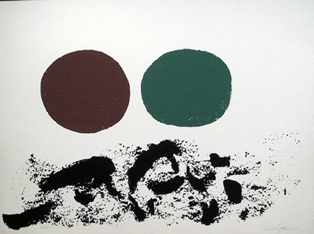 Adolph Gottlieb, one of the “first generation” of Abstract Expressionists, was born in New York in 1903 to Jewish parents. From 1920-1921 he studied at the Art Students League of New York, after which, having determined to become an artist he left high school at the age of 17 and worked his passage to Europe on a merchant ship. he traveled in France and Germany for a year. He lived in Paris for 6 months during which time he visited the Louvre Museum every day and audited classes at the Académie de la Grande Chaumière. He spent the next year travelling in Germany, Austria, Czechoslovakia, and other part of Central Europe, visiting museums and art galleries. When he returned, he was one of the most traveled New York Artists. After his return to New York, he studied at the Art Students League, Parsons School of Design,Cooper Union and the Educational Alliance.
