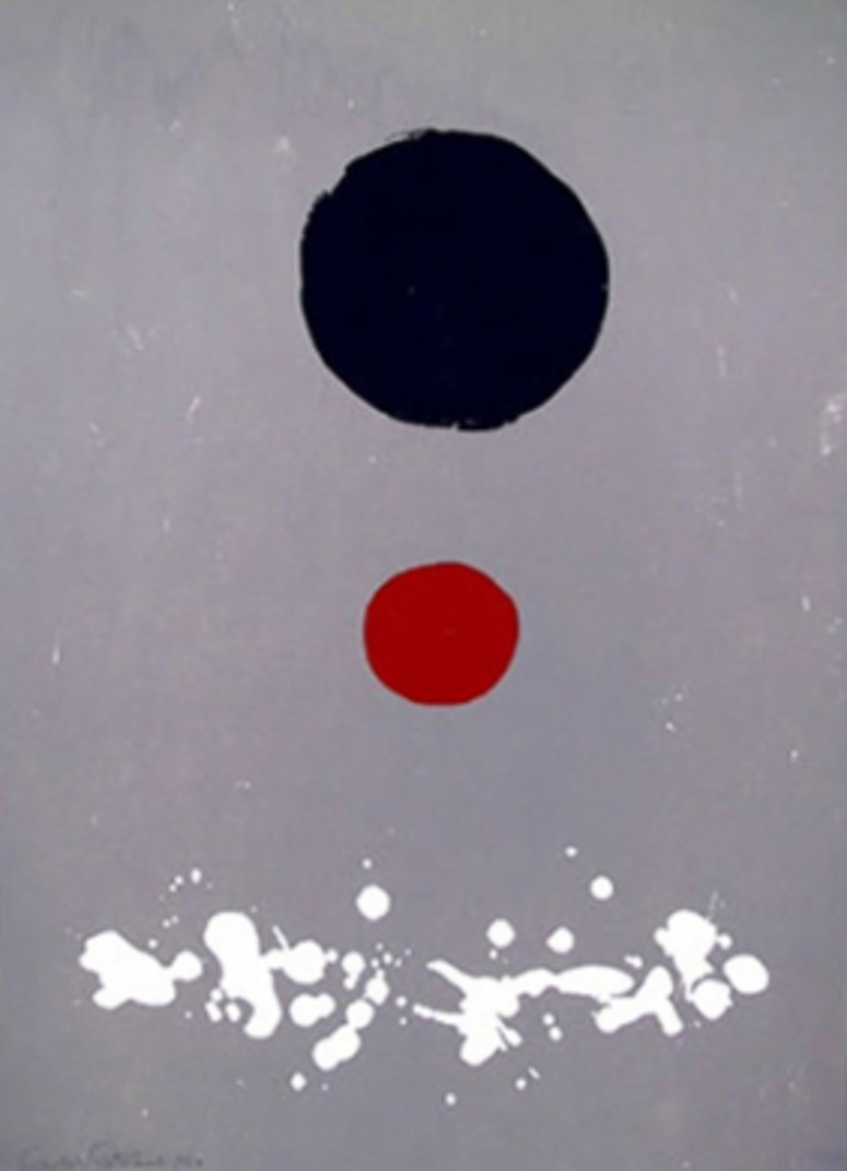 Late in 1956 Gottlieb formulated the image that has become know as the “Burst” and spent most of the next 2 years working on this approach. He simplifies his representation down to two shapes discs and winding masses. His paintings are variations with these elements arranged in different ways. This series, unlike the Imaginary Landscape series, suggests a basic landscape with a sun and a ground. On another level, the shapes are so rudimentary; they are not limited to this one interpretation. Gottlieb was a masterful colorist as well and in the Burst series his use of color is particularly crucial. He is considered one of the first color field painters and is one of the forerunners of Lyrical Abstraction. Gottlieb’s career was marked by the evolution of space and universality.