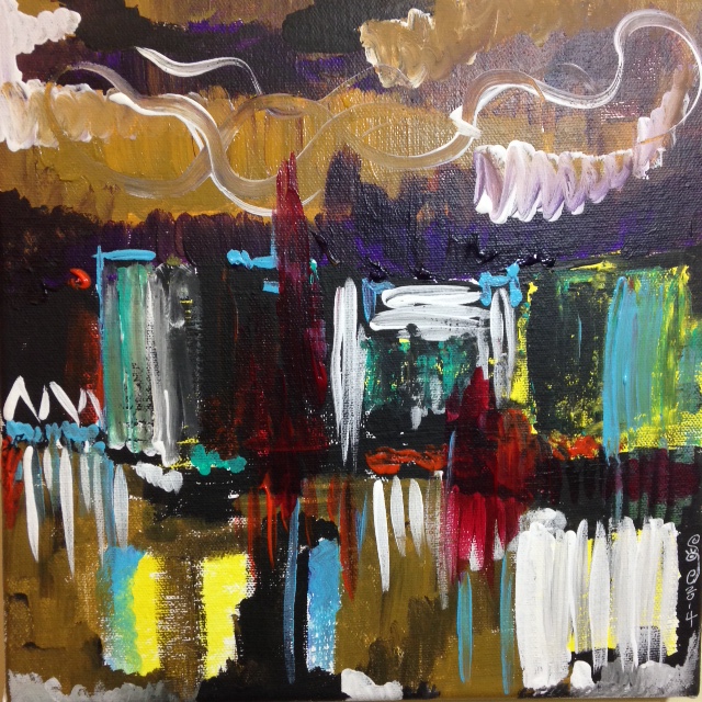 I definitely wanted to do a cityscape painting for my Joan Mitchell tribute.  So I went online and looked at various cityscapes.  I chose one that I found that I couldn’t resist attempting to do an abstract version of.  It was very difficult, much harder than I expected.  I had this vision of what I wanted it to look like…I don’t think I achieved it fully, but I think it turned out okay.