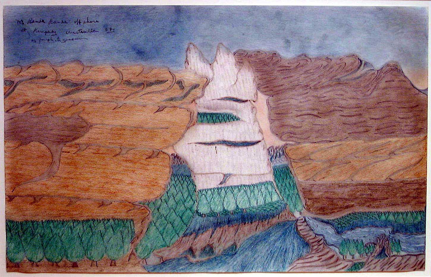 Here is a link to info on the first book dedicated to Joseph Yoakum’s art called, Traveling the Rainbow by Derrel B. De Passe.