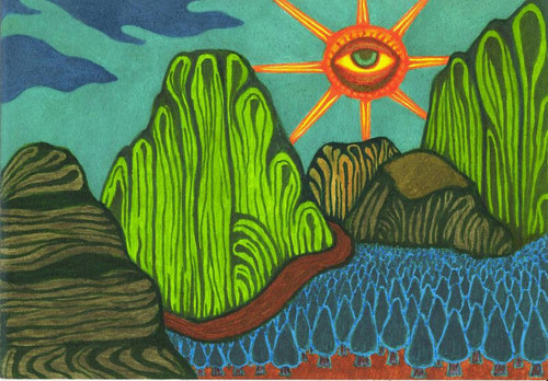 Painting in Yoakum’s style was very relaxing and freeing in a way. At first, I wanted to have a landscape reference photo, but then decided to just paint from an image in my mind.