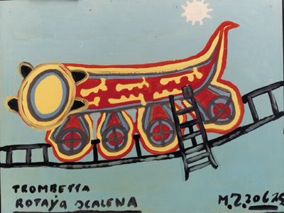 Tarcisio Merati (27 May 1934 – 22 October 1995), also known as “Coccolone”, was an Italian outsider artist. He spent much of his adult life, including most of his artistically productive years, in a psychiatric hospital. He produced a large quantity of drawings, texts and musical compositions. He is best known for his drawings of “dream toys”.