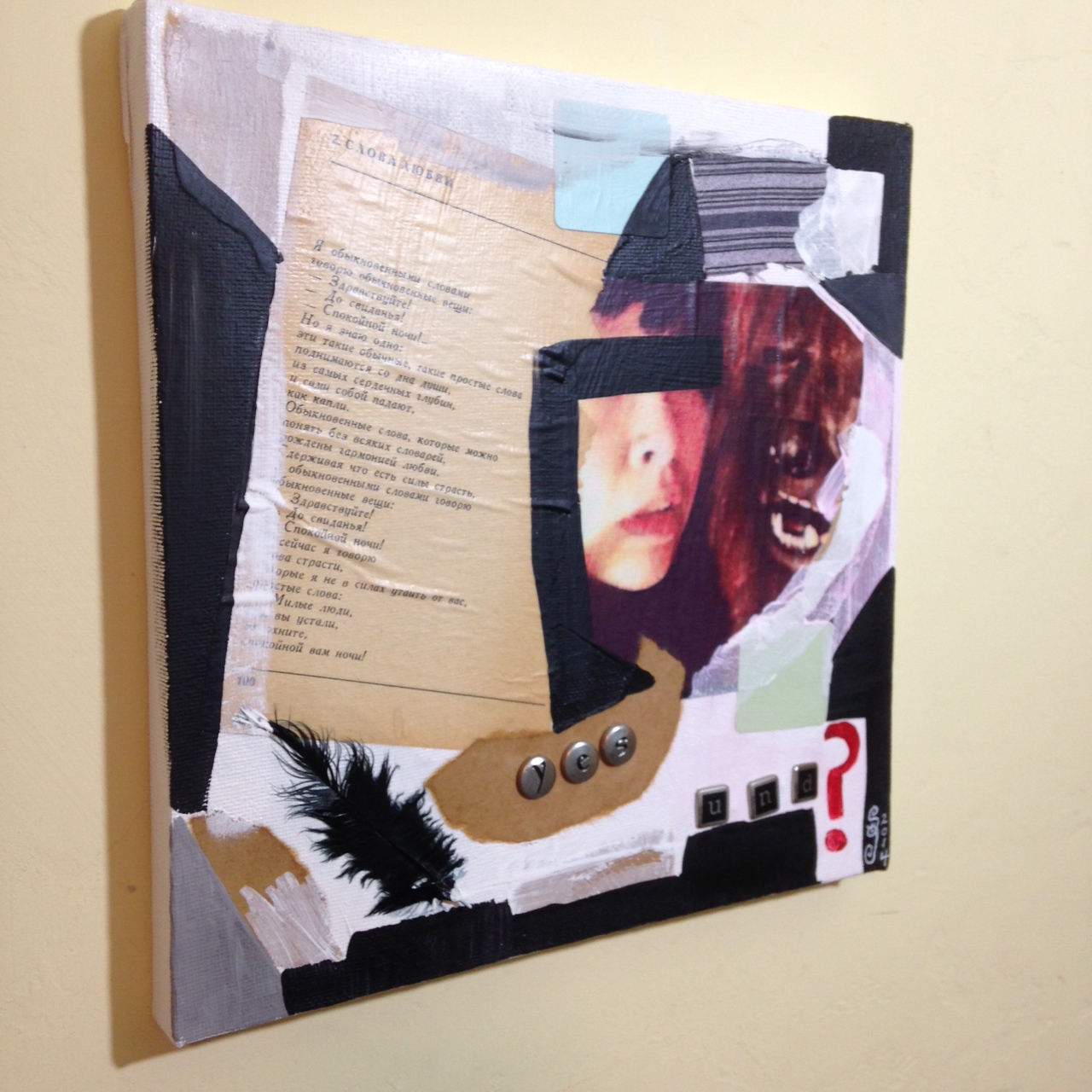 It’s Day 79 and my roof is officially done! And I have a brief respite until the exterior painters paint the outside of the house. Our house is going to look so cute! I am however suffering a bunch from my costochondritis (benign chest inflammation) and I think I want to go to the doctor to check myself out (just in case). My anxiety from this condition is going crazy. I think the stress from the move and all this mayhem is starting to manifest itself physically. Not to mention all the tragedy from the last year. Other than that, I’ve been painting a ton of large canvases (fun!) and today I am honoring Kurt Schwitters.