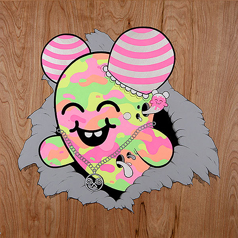 Along with meticulously executed paintings, he has created a wide range of merchandise ranging from prints and stickers, to vinyl toys and plush. In 2012 he created an ambitious homage to Garbage Pail Kids called The Melty Misfits; a collection of vintage-style trading cards, complete with wax wrapper.