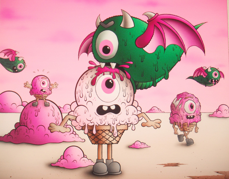 everything he creates. And he often cites heavy metal music, ice cream and Japanese Culture as major influences. His work has been shown in galleries worldwide, often accompanied by large installations.