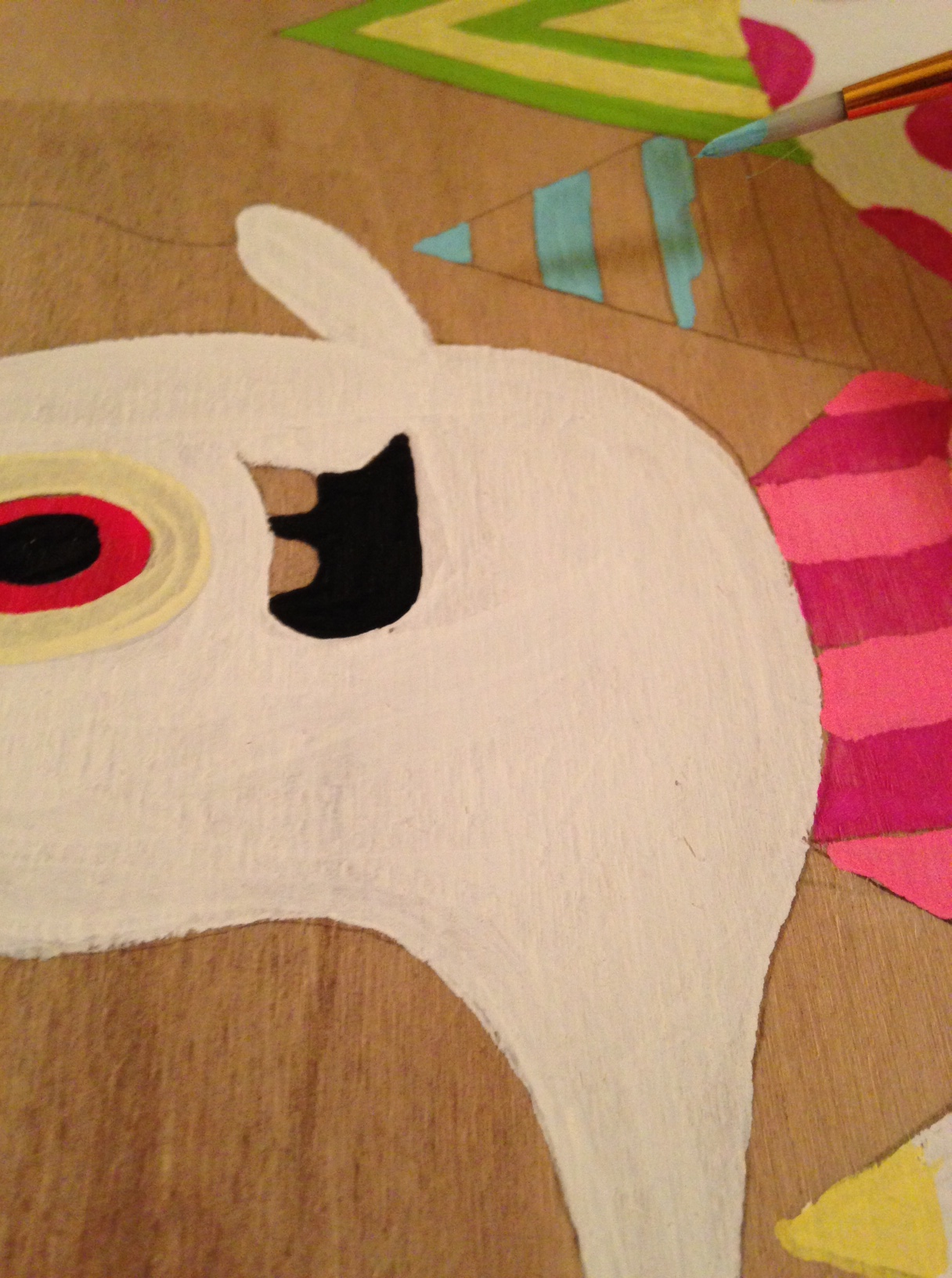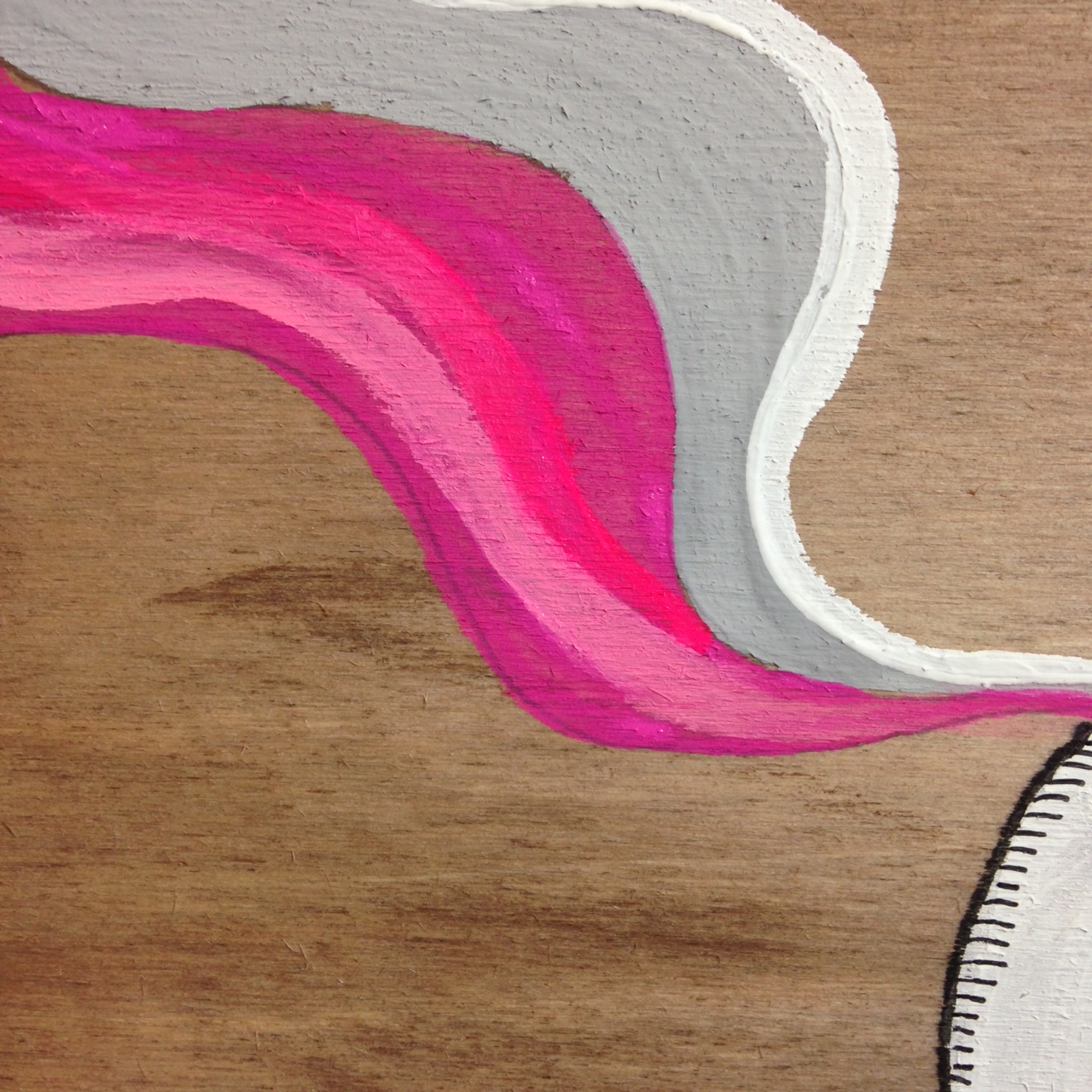 and then paint it in his style.  I had to borrow a bunch of pinks from Karli’s paint stash.  The neon pink really started hurting my eyes when I was painting, but it’s just so darn cool.  I also dug out a wood panel to paint on so it’s not on the usual 10 x 10 canvas, but on a 8 x 10.