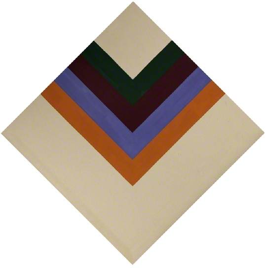 Noland pioneered the shaped canvas, initially with a series of symmetrical and asymmetrical diamonds or chevrons. In these paintings, the edges of the canvas become as structurally important as the center. During the 1970s and 1980s his shaped canvases were highly irregular and asymmetrical. These resulted in increasingly complex structures of highly sophisticated and controlled color and surface integrity.