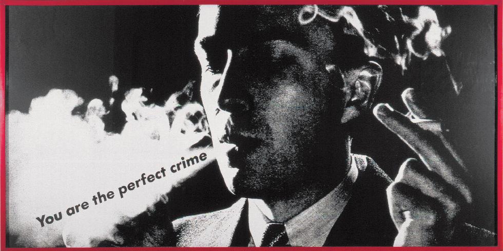 Kruger has said that “I work with pictures and words because they have the ability to determine who we are and who we aren’t.” A larger category that threads through her work is the appropriation and alteration of existing images. The importance of appropriation art in contemporary culture lay in its ability to play with preponderant imagistic and textual conventions: to mash up meanings and create new ones. Her poster for the 1989 Women’s March on Washington in support of legal abortion included a woman’s face bisected into positive and negative photographic reproductions, accompanied by the text “Your body is a battleground.” A year later, Kruger reused this slogan in a billboard commissioned by the Wexner Center for the Arts. Twelve hours later, a group opposed to abortion responded to Kruger’s work by replacing the adjacent billboard with an image depicting an eight-week old fetus. In describing her use of appropriation, Kruger states: