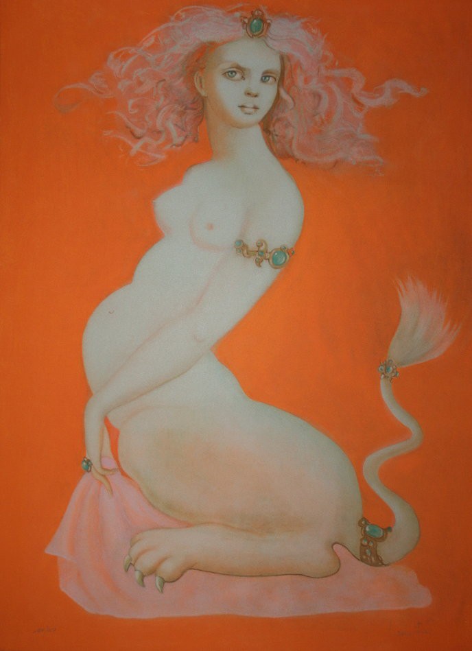 Medusa- Tribute to Leonor Fini Linda Cleary 2014 Acrylic on Canvas