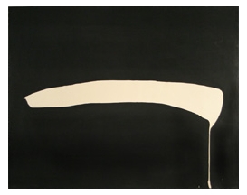 final years, to the repeated depiction of circles reminiscent of “satori,” the enlightenment of Zen. This white circle was made by leaving the canvas unpainted while painting the background black. When asked about his circles, Yoshihara said that he could not manage to paint even one circle with satisfaction, an indication of the depths of his pursuit of this form. Indeed, no two of his circles are shaped exactly alike. He was the leader of the Gutai Group until his death in 1972.