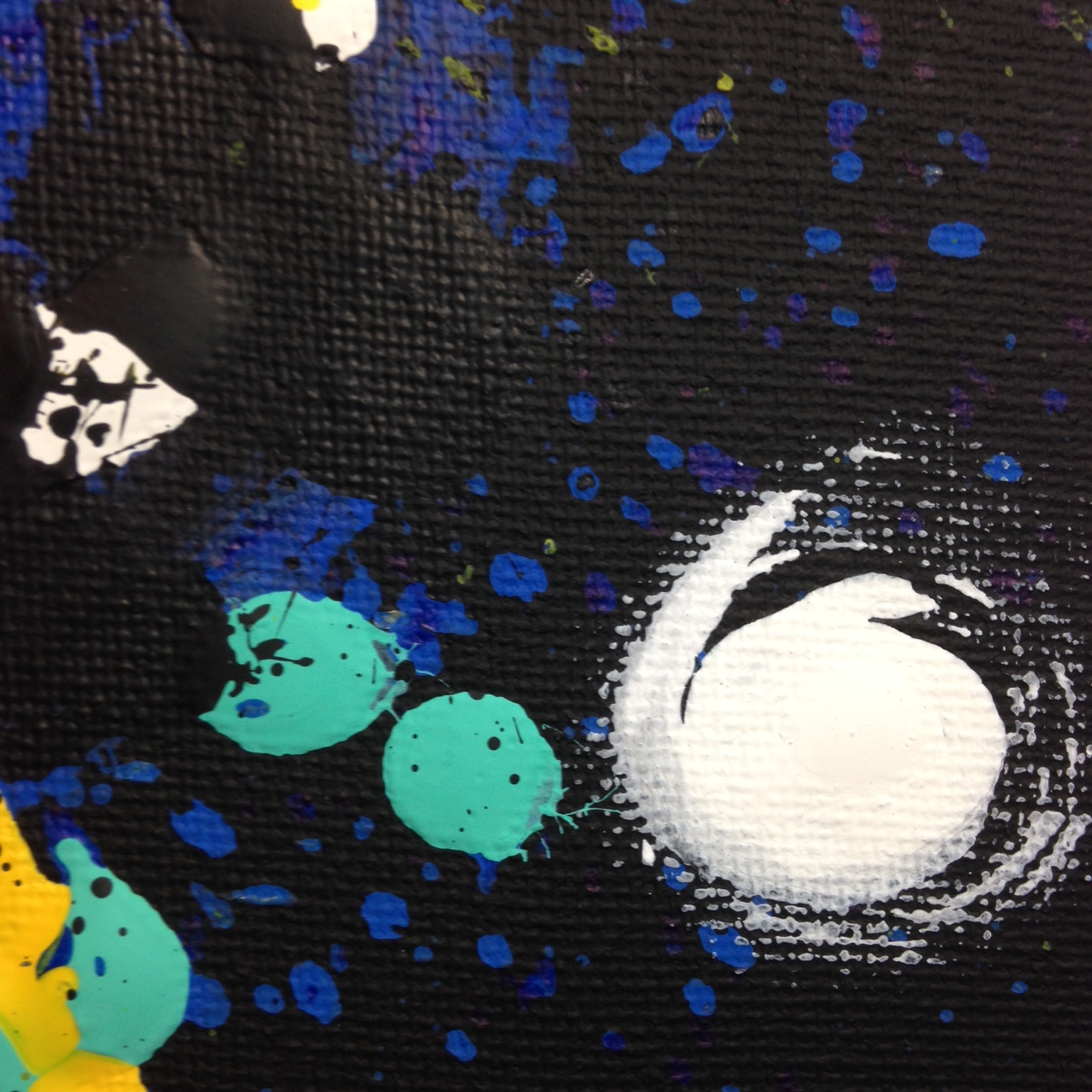 I really had fun painting this piece today. In order to get the splashy effect, I put a tarp down and watered down the paint and had did a Pollock-esque experience. I then used sticks and my fingers to paint. So no brushes today. Just splashing, finger painting and dripping today. It was fun and I also had to wait for layers to dry before applying more so it took longer than most paintings. I hope you enjoy it and I’ll see you tomorrow on Day 149! Best, Linda