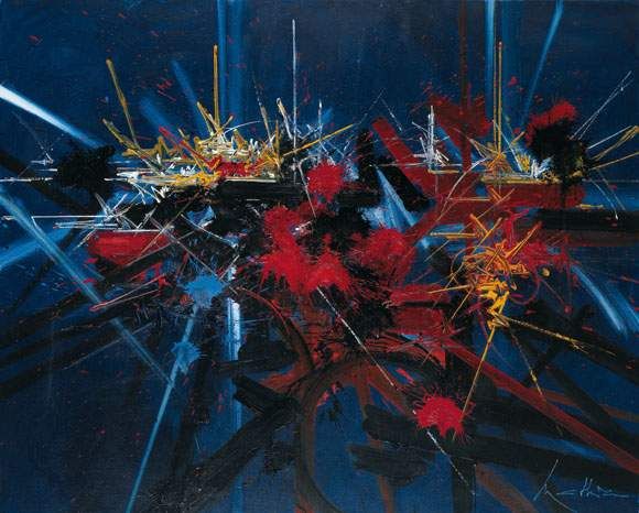 vanguard New York art scene, thus becoming aware of Action Painting. He became aware of lyrical abstraction and abstract expressionism. He began to show at galleries around 1946, at the Sixth Hall of the Minors for 30 years, Galerie Des Beaux-Arts of Paris, and in 1950 he held his first solo exhibition at the Galerie René Drouin, Paris.