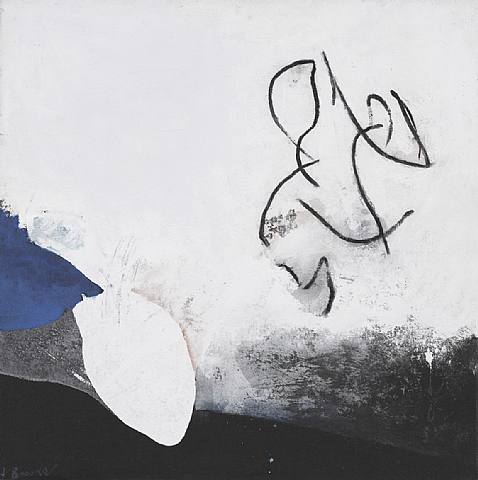 In his paintings from the late 1940s Brooks began to dilute his oil paint in order to stain the mostly raw canvas. These works often combined calligraphy and abstract shapes.