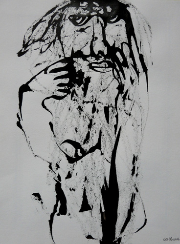 produces paintings that, like those of the surrealist Andre Masson or the abstract expressionist Robert Motherwell, take their form through a kind of automatic writing where he attempts to suspend thought and let the subconscious take over. On other occasions, he turns outs ink drawings that appear so maddeningly detailed that their creation would seem to require the concentration of a brain surgeon.