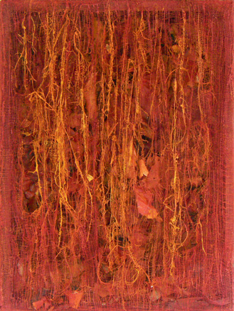 as the topography of intimate landscapes, as well as the mapping of emotions and sensations devoid of familiar forms. The paintings are a personal diary of the artist as she chronicles the events that had an impact on humanity and nature.