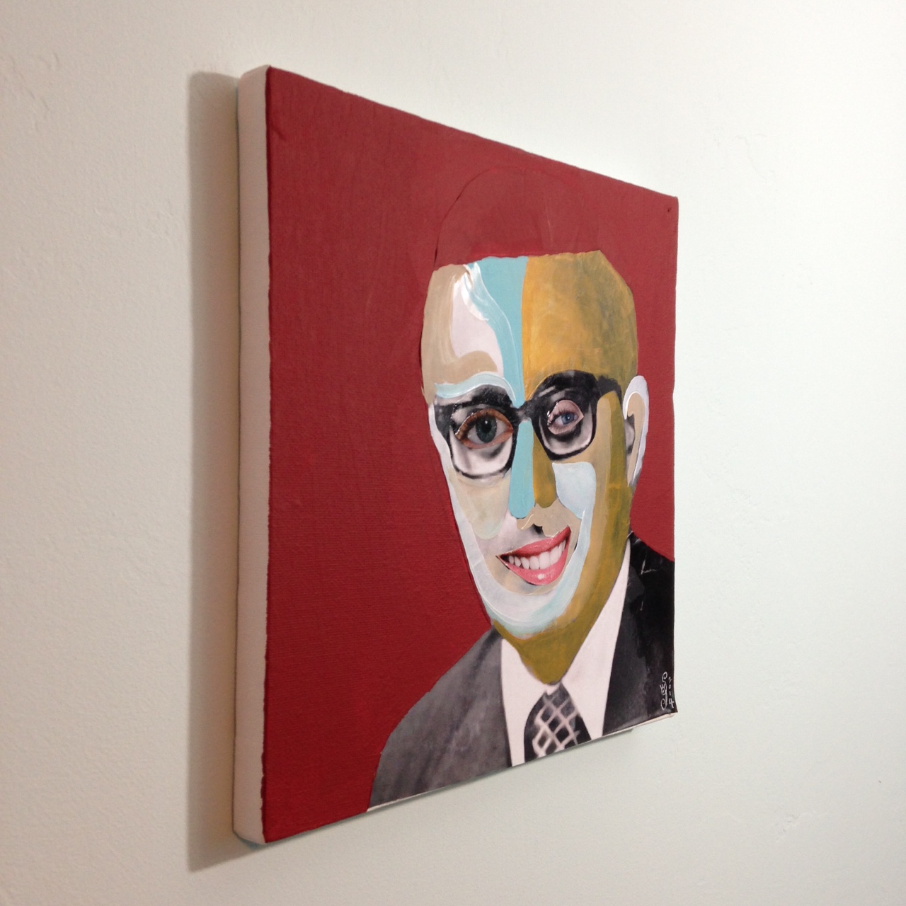 doing something along the lines of his “Interior” series. It felt like that was the obvious choice, but then I saw his piece, Portrait of Hugh Gaitskell as a Famous Monster of Filmland and instantly became inspired. I thought about who I wanted to collage and paint and then I thought of Henry Kissinger for some reason. And THEN I thought of my friends’ John and Mark’s band Sizzling Mansions and how they have a song called, Kissinger Smile (which I love) and thought I’d do something inspired by that song! I always laugh when they sing, “You got that Kissinger smile”. So that’s basically the background of how I came up with my absurd (in a good way) tribute to Richard Hamilton. I hope you enjoy it because I definitely had that Kissinger smile as I painted it. And please don’t ask what that means because I have no idea. See you tomorrow on Day 171. Best, Linda