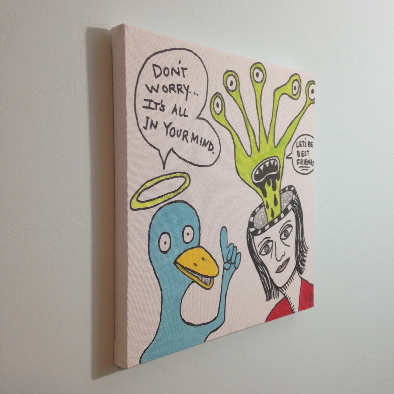 My painting for today was just created on the fly. I didn’t want to overanalyze what I was going to draw so I just doodled something that was inspired by Daniel Johnston. Now I want to go listen to some Daniel Johnston songs! I hope you enjoy my piece for today and I’ll see you tomorrow on Day 172. Best, Linda