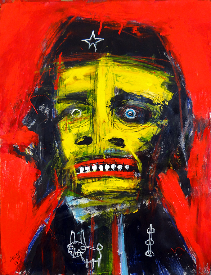 out really bizarre-looking: The eyes, the mouth, the teeth were way too big. People liked it. Eventually I started painting things that happened to me: When I was 8 years old, I was playing in a field by an airstrip and was struck by a landing airplane. The propeller severed my arm. So I’ve painted people missing limbs, people pointing at someone with a disability.