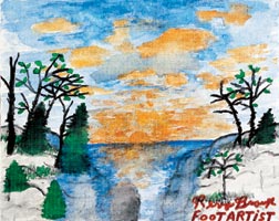 I hope you enjoy my piece today. I created it with a mixture of using my own toes to do the background and then I attempted to to trees and detailing while holding a paintbrush between my toes. My respect factor was already high, but after attempting this just once it’s gone through the roof.