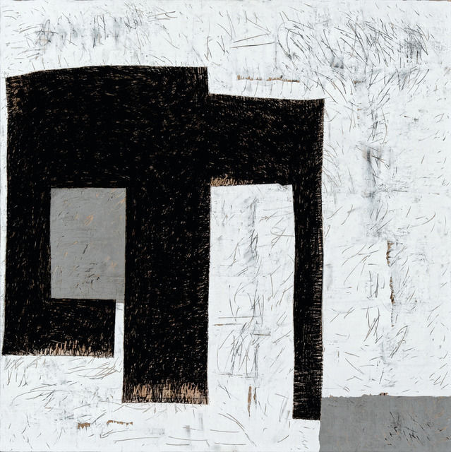 Keith Johnston’s minimalist works are spare, tonal arrangements of light and dark forms, with tentative whispers of drawings. He conceives the work on wood panel in encaustic, which is often scraped and reapplied, and then adds graphite. There are no preliminary sketches.