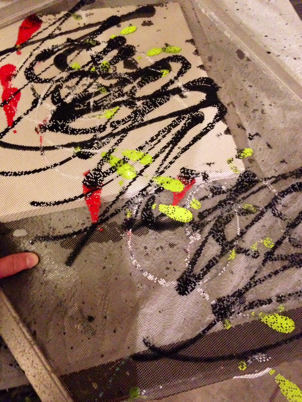 I think this one is netting that paint fell on and then it was mounted.