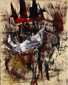 Yasuo Sumi (1925) is known as one of the action painters of the Gutai movement. After entering the Gutai in 1955, and have participated in all exhibitions of the movement, from the first to the twenty-first, and, later, in the Art Club directed by Taro Okamoto, Sumi is now a member of the Group AU, at which inevitably participates in exhibitions .