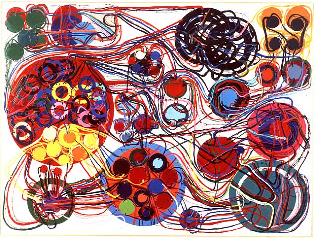 It’s Day 219 and today’s painting was fun. I loved the concept of this artist’s paintings. 🙂 I also spent a good portion of the day relaxing a bit because I felt a little under the weather. Join me in honoring Atsuko Tanaka today. One of the few female (or only) Gutai group artists.
