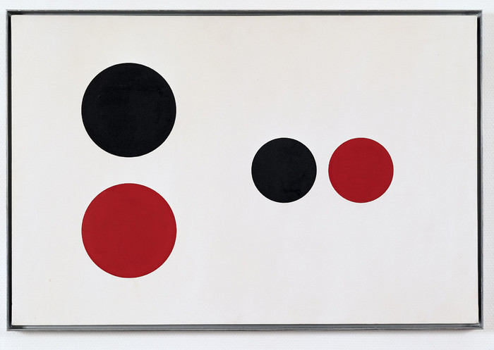 Only in the 1950s did Liberman take up painting and, later, metal sculpture. His highly recognizable sculptures are assembled from industrial objects (segments of steel I-beams, pipes, drums, and such), often painted in uniform bright colors.