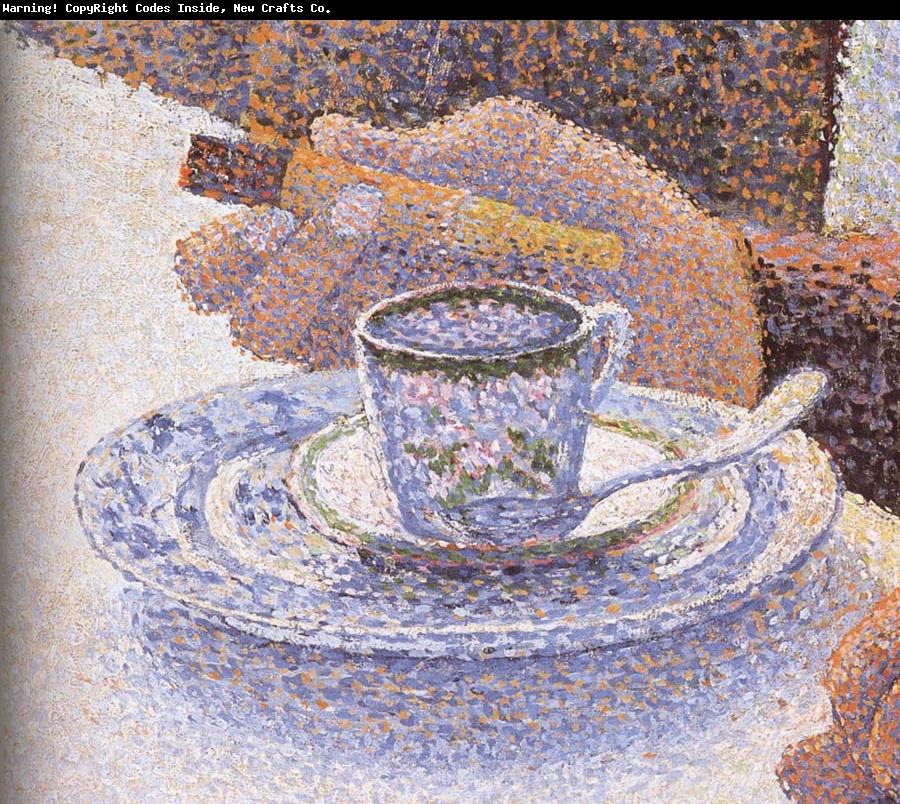 In 1886 Signac met Vincent van Gogh in Paris. In 1887 the two artists regularly went to Asnières-sur-Seine together, where they painted such subjects as river landscapes and cafés. Initially, Van Gogh chiefly admired Signac’s loose painting technique. In March 1889, Signac visited Vincent van Gogh at Arles. The next year he made a short trip to Italy, seeing Genoa, Florence, and Naples.