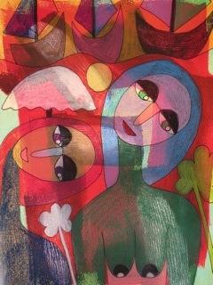 meetings, Pierre Silvin built its high color images! As if he wanted to show us a compendium of life, a sample of times when everything is mixed: faces, animals, colors, materials. His characters or animals and colorful multitude of sizes and shapes are represented with boldness and spontaneity.