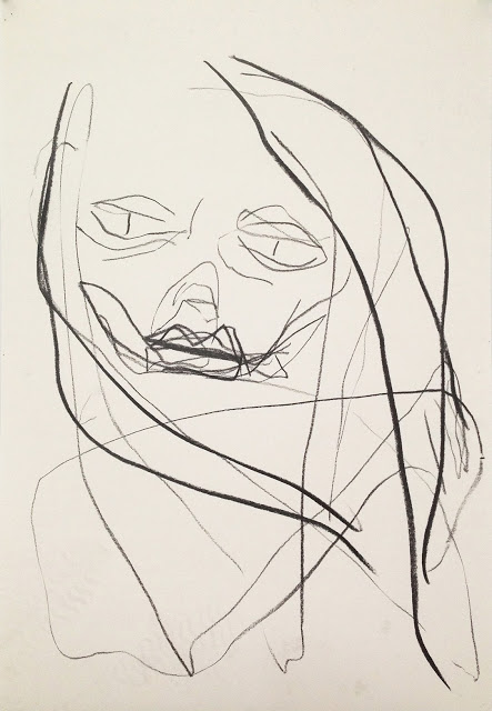end up as fodder on the floor possibly to be reworked later. Sometimes it takes many months to decide something is complete when it was actually done in a few minutes. Because it takes a lot of time to clear your head of your own prejudices and expectations to realize something’s already operating quite effectively. Speed is important in another way, in drawing these the faces of these nine the smile goes directly into the eyes, so there’s an economy of means, an economy of line.