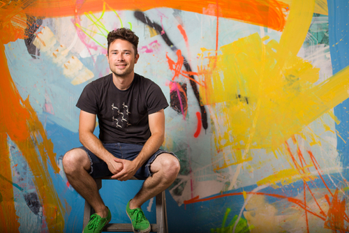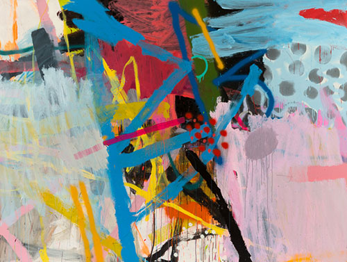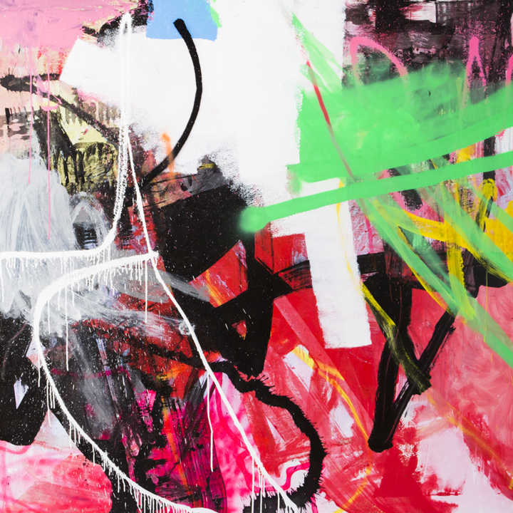 feels it plays an important role in the community. His artwork combines a street culture point-of-view with abstract compositions often consisting of vibrant colors, playful lines and a wide variety of shapes. His work focuses on the relationships of shapes, forms and colors and how those elements interact with one another.