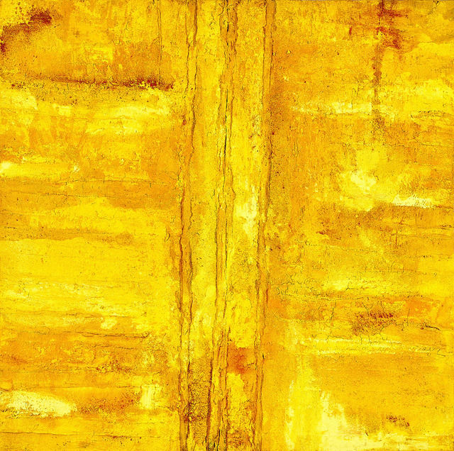 His paintings are structured by colors, oils and pigments that are spread thickly on the canvas; laid one upon the other, buried and then reemerged on the surface in various phases. Through this painting technique the surface develops interlaced designs, crossroads and interferences.