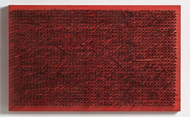 Aubertin met Yves Klein in 1957 and started making his first red monochrome works during 1958-59.