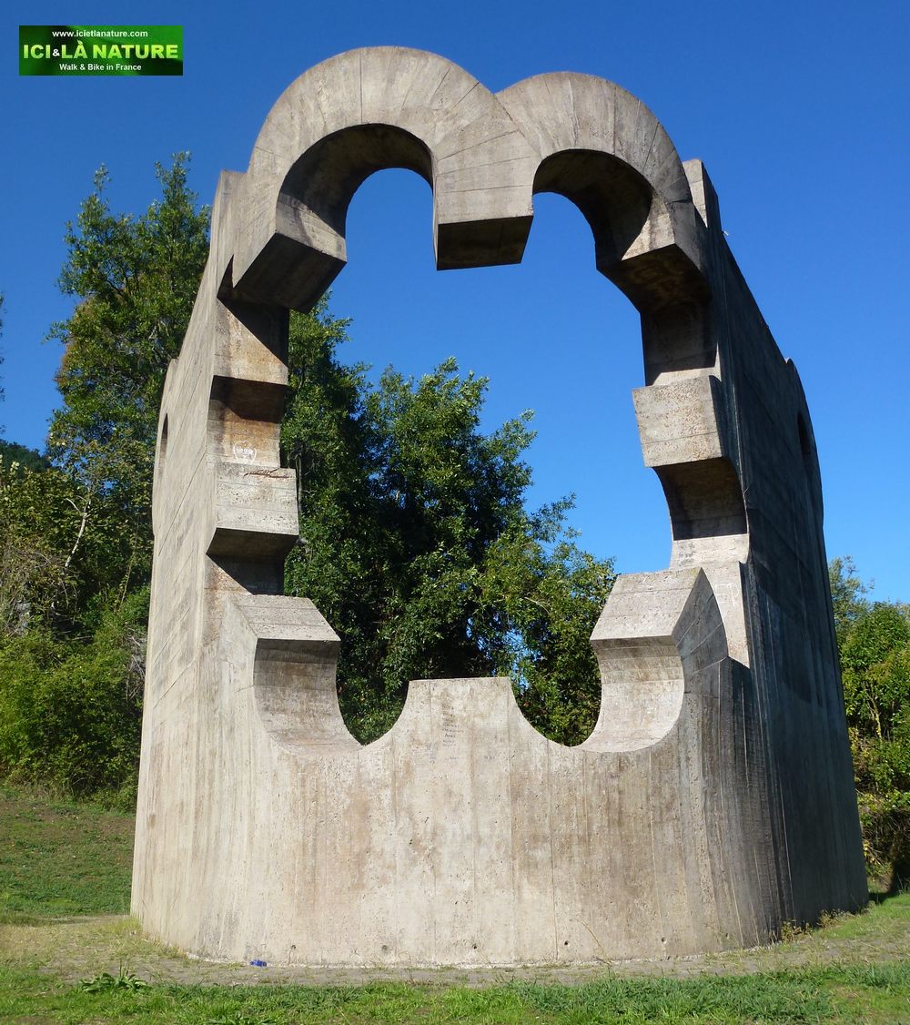At their best his works, although massive and monumental, suggest movement and tension. For example, the largest of his works in the United States, De Musica is an 81-ton steel sculpture featuring two pillars with arms that reach out but do not touch. Much of Chillida’s work is inspired by his Basque upbringing, and many of his sculptures’ titles are in the Basque language Euskera. His steel sculpture De Música III was exhibited at the Yorkshire Sculpture Park in the UK, as part of a retrospective of Chillida’s work.