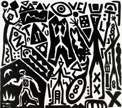 In the 1980s he became known worldwide for paintings with pictographic, neo-primitivist