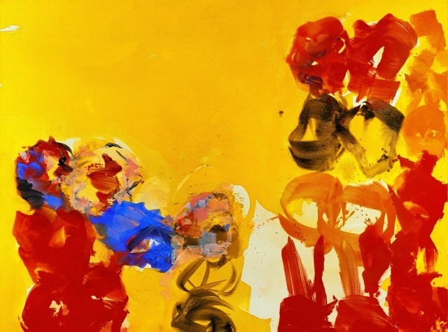 Moreover, Mikl was keen to distance himself from abstract expressionism’s more extravagant aesthetic and intellectual claims. Above all, he did not wish to be seen as representing contemporary anguish or any other spirit of his age. He dismissed the concept of zeitgeist as “decorative”: as he put it, “it works with the masses as the most powerful force, with sentimentality, foolish content, false form, bad technique, the pseudo-philosophy of the art trade. The word zeitgeist is an insult.” Mikl saw himself rather as the Thomas Edison of painting, continually making new discoveries, regardless of the preconceptions of the day. This intellectual dynamism is most clearly reflected in the Redoutensaal canvases, which were completed in 1997. While the ceiling and some of the wall paintings are responses to modern works by Kraus and Elias Canetti, other images in the room refer to the 19th-century dramatists Johann Nestroy and Ferdinand Raimund.