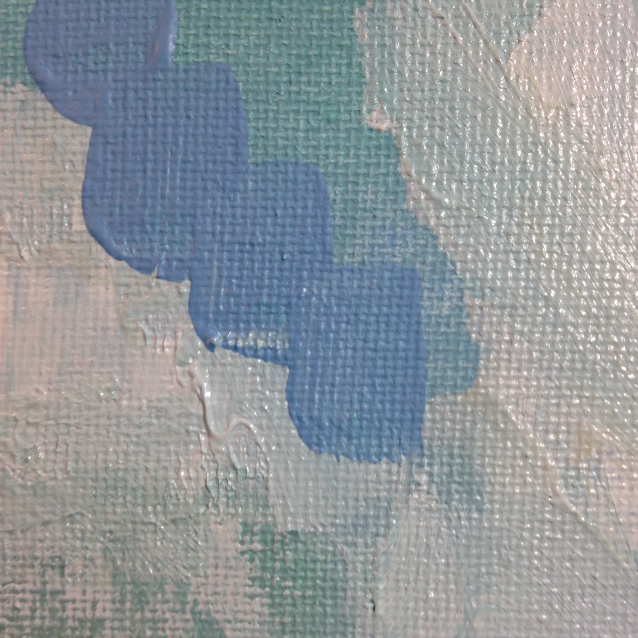 some colors and start mixing with a palette knife. I’ve got music playing, maybe some blues, I’ll take a canvas and cover it in an acrylic color, wait a few minutes for it to dry, then I’ll start laying on the oil paint. I decide as I go. If I don’t like what I see, I scrape it off and start over. (I love how painting takes a certain amount of bravery)