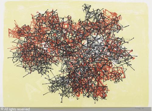 experiences, both in its visual recalling of man-made systems and symbols and with its playful titles like Not only for illiterates (1961) or That’s Enough (2001).