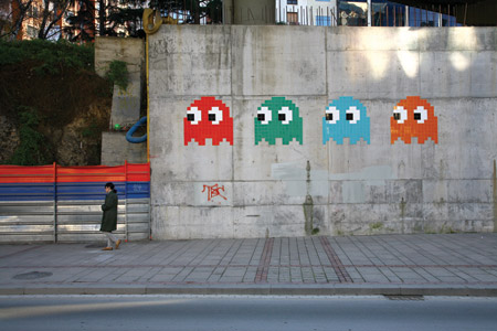 Invader’s pop art may seem shallow, but by taking the risk of illegally re-contextualizing video game characters in an urban environment that provides more chaotic social interaction than a gamer’s bedroom, he makes a statement about the desensitizing nature of video games and consumer culture. In a postmodern paradox, a game like Grand Theft Auto takes the danger of the streets and puts it in a safe video game, while Invader takes a safe video game icon and inserts it into the danger of the streets.