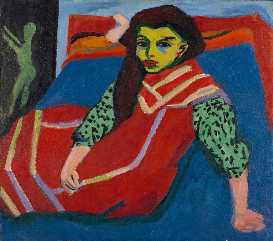 Kirchner’s Expressionistic handling of paint represented a powerful reaction against theImpressionism that was dominant in German painting when he first emerged. For him, it marked a reaction against the staid civility of bourgeois life. He would always deny that he was influenced by other artists, yet Henri Matisse and Edvard Munch were clearly important in shaping his style. Fauvism was particularly significant in directing his palette, encouraging him to use flat areas of unbroken, often unmixed color and simplified forms.